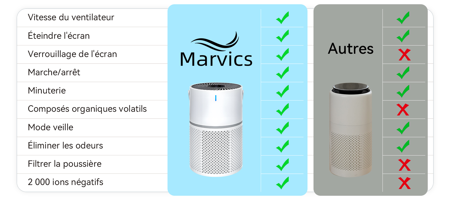 Purificateurs d'air Marvics : Puissants, intelligents et élégants. Découvrez une pureté et un confort sans précédent à chaque inspiration !