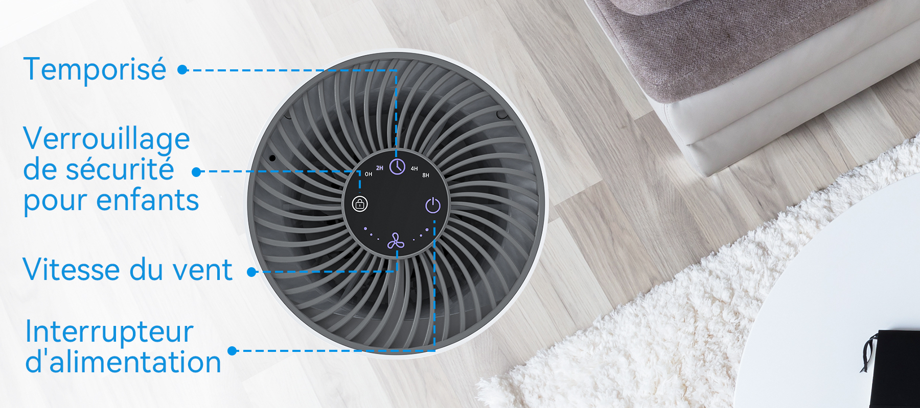- Haute performance, faible consommation d'énergie : Purifie rapidement de grands espaces tout en économisant de l'énergie.