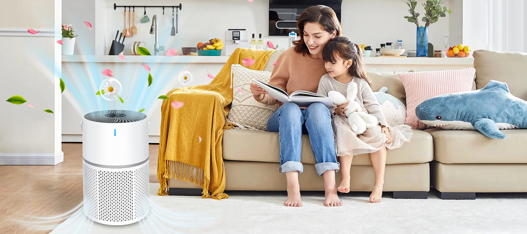 Une efficacité de filtration impressionnante de 99,97 % est atteinte grâce à une technologie de pointe. De minuscules particules aussi petites que 0,3 micron, comme les PM2.5, le pollen et les bactéries, n'ont aucune chance. Une défense solide pour la santé est construite pour vous et votre famille.