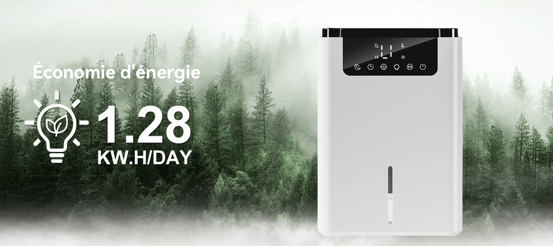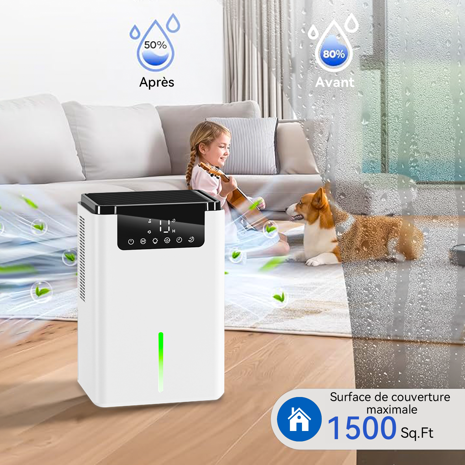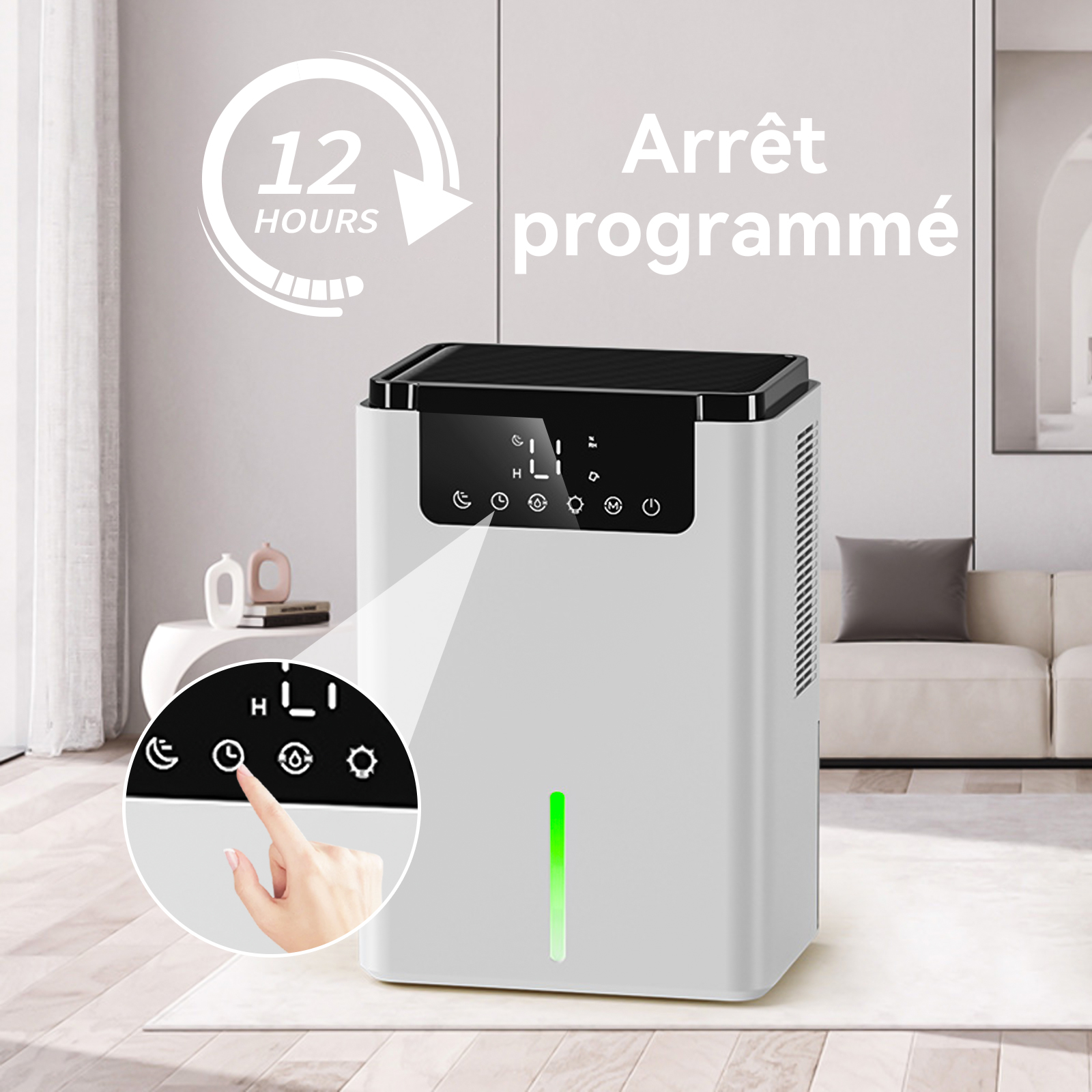 - Écran tactile LED intuitif : Affiche l'humidité en temps réel avec des commandes tactiles simples pour toute la famille.